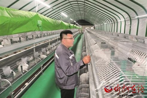 11月12日,原平市段家堡鄉(xiāng)譽(yù)佳肉兔養(yǎng)殖示范基地,技術(shù)人員正在觀察肉兔生長情況。近年來,該鄉(xiāng)創(chuàng)新推行“黨建引領(lǐng)+公司搭臺(tái)+養(yǎng)殖戶受益”的新模式,通過養(yǎng)殖企業(yè)搭建平臺(tái),提供兔苗、飼料、防疫等服務(wù),確保養(yǎng)殖戶收益穩(wěn)定,讓生態(tài)養(yǎng)殖成為了助力鄉(xiāng)村振興的“金鑰匙”。 褚 震攝