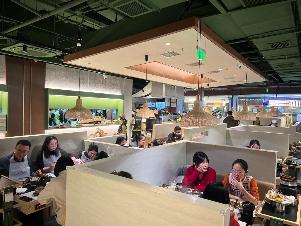 臨近跨年零點(diǎn),山緩緩餐廳山西首店還有一些顧客在排隊候餐,期待嘗鮮“山野風(fēng)”火鍋。山緩緩品牌北區(qū)運(yùn)營總監(jiān)王志剛說:“跨年當(dāng)日我們店的營收額突破8萬元?!辈惋嬙谛嘛L(fēng)格和新體驗上迭代升級,區(qū)域首店也更能激發(fā)消費(fèi)者熱情。