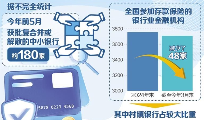 中小銀行是我國(guó)金融體系的重要組成部分,也是推動(dòng)區(qū)域經(jīng)濟(jì)發(fā)展和服務(wù)實(shí)體經(jīng)濟(jì)的生力軍。今年以來,我國(guó)中小銀行改革重組步伐加快,多地的村鎮(zhèn)銀行、農(nóng)商銀行等金融機(jī)構(gòu)被吸收合并重組,將在金融機(jī)構(gòu)名單上加速消失。據(jù)不完全統(tǒng)計(jì),今年前5月,約180家中小銀行獲批復(fù)合并或解散。