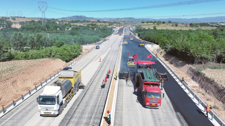 最近,國道108線改建工程(忻州段)激戰(zhàn)正酣,平地機(jī)、裝載機(jī)、瀝青攤鋪機(jī)等設(shè)備馬力全開,路面水穩(wěn)層攤鋪、滑膜機(jī)工藝澆筑中央護(hù)欄等工序正在緊鑼密鼓地進(jìn)行。工人們忙碌穿梭,安全員逐項(xiàng)排查隱患,技術(shù)人員同步檢測施工質(zhì)量,現(xiàn)場一片繁忙有序。掀起大干快干的新高潮,已進(jìn)場施工作業(yè)人員300余人,主要機(jī)械設(shè)備進(jìn)場100臺(tái)套,道路項(xiàng)目水穩(wěn)層鋪設(shè)完成總量的80%,下面層瀝青鋪設(shè)完成總量的60%、上面層瀝青鋪設(shè)完成總量的25%,中央分隔帶護(hù)欄累計(jì)完成59.41%。涌動(dòng)的數(shù)字可以折射火熱的工作場面。國道108線忻州段改建工程項(xiàng)目是“十四五”期間全省規(guī)模最大、里程最長、投資最多的國省干線新改建工程。今年以來,山西路橋集團(tuán)忻州國道項(xiàng)目建設(shè)管理有限公司提前吹響決戰(zhàn)的沖鋒號(hào),圍繞項(xiàng)目建設(shè)爭分奪秒搶進(jìn)度。項(xiàng)目部正采取“白+黑”“五+二”的工作模式,組織工人對(duì)路面、路基、交安、機(jī)電、綠化采取交叉作業(yè)等方式施工,在確保質(zhì)量安全的前提下,各項(xiàng)工作正按照預(yù)期目標(biāo)穩(wěn)步推進(jìn)。