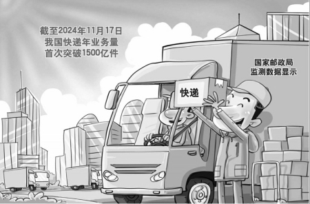 據(jù)新華社電 國家郵政局監(jiān)測數(shù)據(jù)顯示,截至11月17日,我國快遞年業(yè)務(wù)量首次突破1500億件。