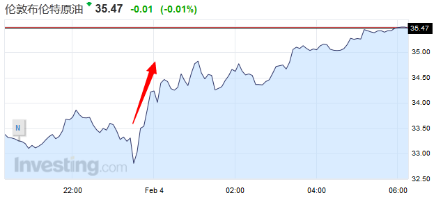 美國(guó)原油期貨結(jié)算價(jià)報(bào)每桶32.28美元,大漲2.40美元,或8%。布蘭特原油期貨結(jié)算價(jià)報(bào)每桶35.04美元,勁升2.32美元,或7.1%,盤中高見35.11美元。