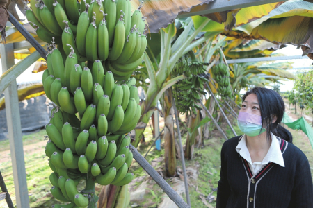 大棚內(nèi),成熟的香蕉掛滿枝頭,填補了北方無自產(chǎn)南方水果的空白。
