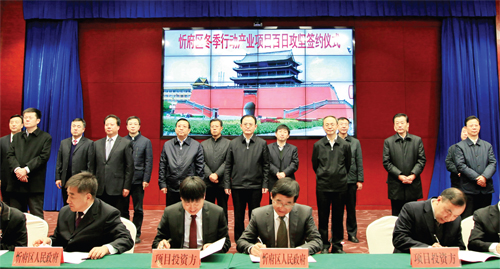 忻府區(qū)領(lǐng)導(dǎo)在簽約儀式上承諾,將繼續(xù)在市委、市政府的堅強(qiáng)領(lǐng)導(dǎo)下,全面推進(jìn)項目攻堅百日行動,堅持叩門招商、開放包容、鞠親服務(wù),堅決杜絕吃、拿、卡、要,嚴(yán)厲打擊破壞投資環(huán)境的人和事,全力營造親商、安商、富商的良好氛圍。集中人力、精力、財力,服務(wù)、指導(dǎo)、幫扶到位,落實(shí)任務(wù)、責(zé)任、措施,促開工、搶進(jìn)度,攻難點(diǎn)、破難題,強(qiáng)服務(wù)、治環(huán)境,發(fā)揚(yáng)“白+黑”、“5+2’’、“晴+雨”連續(xù)作戰(zhàn)精神,苦干實(shí)干,按照“九個一批”工作方案,全力解決已排查出的涉及現(xiàn)有32個項目中的51個問題,全力策劃好總投資222.16億元的華能風(fēng)光互補(bǔ)發(fā)電、上海航天光伏發(fā)電、北京富丞應(yīng)急救援工程等30個項目,全力促進(jìn)總投資41.25億元的田森匯生活購物廣場等6個項目落地,全力推進(jìn)總投資85.8億元的華能風(fēng)電、上海光伏發(fā)電等23個項目的開工建設(shè)。