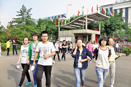 6月6日下午5點,忻州一中考點的考生們進入校區(qū),確認、熟悉考場環(huán)境