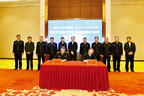 為進(jìn)一步貫徹落實(shí)省委省政府《關(guān)于全面擴(kuò)大開(kāi)放的意見(jiàn)》,市政府和山西出入境檢驗(yàn)檢疫局本著“合作、服務(wù)、促進(jìn)、發(fā)展”的原則,經(jīng)認(rèn)真協(xié)商,就發(fā)揮各自職能優(yōu)勢(shì),促進(jìn)農(nóng)產(chǎn)品擴(kuò)大出口、創(chuàng)建法蘭出口質(zhì)量安全示范區(qū)以及支持五臺(tái)山機(jī)場(chǎng)航空口岸臨時(shí)對(duì)外開(kāi)放等方面達(dá)成共識(shí),建立合作機(jī)制,促進(jìn)我市對(duì)外開(kāi)放和外向型經(jīng)濟(jì)發(fā)展,助力脫貧攻堅(jiān)。具體合作事項(xiàng)包括:一、促進(jìn)農(nóng)產(chǎn)品擴(kuò)大出口。確定重點(diǎn)幫扶產(chǎn)業(yè),創(chuàng)建出口食品農(nóng)產(chǎn)品質(zhì)量安全示范區(qū),培育出口企業(yè),打造知名品牌,拓展國(guó)際市場(chǎng)。二、助推出口工業(yè)品質(zhì)量提升。推動(dòng)質(zhì)量品牌提升,推進(jìn)工業(yè)產(chǎn)品“三同”工程,加強(qiáng)國(guó)外技術(shù)性貿(mào)易措施應(yīng)對(duì),強(qiáng)化公共檢測(cè)技術(shù)服務(wù)。三、支持五臺(tái)山機(jī)場(chǎng)航空口岸臨時(shí)對(duì)外開(kāi)放。全力支持五臺(tái)山機(jī)場(chǎng)對(duì)外開(kāi)放口岸平臺(tái)建設(shè),科學(xué)規(guī)劃和建設(shè)五臺(tái)山機(jī)場(chǎng)口岸檢驗(yàn)檢疫技術(shù)查驗(yàn)設(shè)施,做好口岸核心能力建設(shè)和動(dòng)植物檢疫規(guī)范化建設(shè)各項(xiàng)工作,防范國(guó)外人類傳染病和動(dòng)植物疫情疫病傳入,保障國(guó)門生物安全。