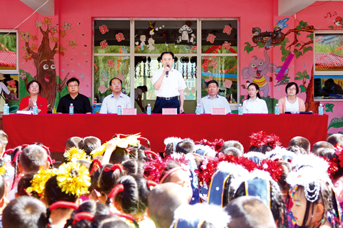圖為市委書記李俊明在岢嵐縣春芽幼兒園與師生共慶“六一”,他向幼兒園小朋友們表示節(jié)日的祝賀,并向全市少年兒童表示節(jié)日的問(wèn)候。馬毅龍 攝