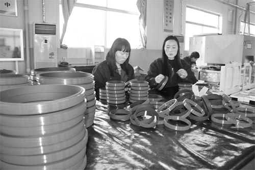 圖為1月21日,原平市泰寶密封有限公司的工人們正在生產(chǎn)加工密封件。該企業(yè)擁有國(guó)際先進(jìn)水平的奧地利無模密封件生產(chǎn)線,年生產(chǎn)能力達(dá)1200萬件。產(chǎn)品行銷東南亞各國(guó)和全國(guó)二十多個(gè)省市,廣泛應(yīng)用于煤炭、石油、冶金、機(jī)械、化工、電力、交通運(yùn)輸?shù)刃袠I(yè)。(褚震 攝)