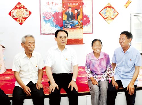 圖為省人大常委會副主任、市委書記李俊明在忻府區(qū)解原鄉(xiāng)大莊村慰問困難老黨員馬補田。(本報記者 劉紀森 攝)