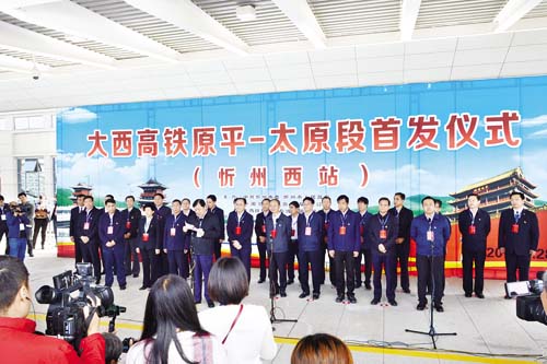 本報訊(記者楊峰雷 任逢春)9月28日11時57分,車廂標有“魅力忻州心靈之舟”及五臺山標志性古建大白塔圖案的D5363次“和諧號”動車組列車緩緩駛離忻州西站,這標志著廣大群眾期盼已久的大西高鐵原平西至太原南段正式開通運營,我市從此并入全國高速鐵路網(wǎng)絡,邁入高鐵時代。高鐵開通首發(fā)儀式在忻州西站一站臺舉行,省人大常委會副主任、市委書記李俊明宣布高鐵開通并發(fā)出發(fā)車指令,市長鄭連生、太鐵集團公司副總經(jīng)理劉楓分別致辭。市領導王珍、劉鋼柱、陳義青、王建廷、范晉昌、崔建新等出席首發(fā)儀式。市委常委、常務副市長趙志堅主持首發(fā)儀式。 鄭連生在致辭中祝賀大西高鐵原平西至太原南段開通,感謝工程建設者付出的努力和心血,感謝沿線廣大干部群眾的大力支持。他指出,大西高鐵原平西至太原南段開通運營后,各級各相關部門及沿線干部群眾要增強愛路護路意識,著力為鐵路運行提供保障、搞好服務,確保鐵路安全運行,確保旅客安全出行。這條鐵路的開通運營,給忻州擴大開放帶來了機遇,也給忻州發(fā)展帶來了挑戰(zhàn),我們要在省委、省政府的堅強領導下,繼續(xù)堅持“產(chǎn)業(yè)第一、項目至上、企業(yè)為重、服務為本”的發(fā)展理念,進一步深化改革,擴大開放,努力打造“六最”營商環(huán)境,真正把忻州建設成為投資的洼地、創(chuàng)業(yè)的樂土、開放的平臺,熱忱歡迎各方仁人志士來忻州觀光、投資、興業(yè)。要在鐵路部門和廣大干部群眾的大力支持下,把高鐵的開通轉(zhuǎn)化成招商引資的優(yōu)勢,積極推動項目建設,不斷改善群眾生活,促進忻州經(jīng)濟社會各項事業(yè)取得更大發(fā)展,讓我們共同生活的地方越來越美好。 劉楓在致辭中表示,大西高鐵原平西至太原南段開通,縮短了忻州與省城太原以及晉中、晉南的時空距離,下一步隨著忻雄高鐵開工建設,忻州將成為我省重要鐵路樞紐,與鐵路攜手發(fā)展的優(yōu)勢將更加凸顯。我們將著力滿足人民群眾出行的新需求,大力實施提質(zhì)工程,提升旅客的出行品質(zhì),路地聯(lián)手深化合作,實現(xiàn)高鐵動車組與長途公共汽車的無縫銜接,讓忻州人民群眾的出行更便捷。我們將聚焦黃河、長城、太行三大板塊,突出五臺山、雁門關等知名景區(qū),大力推行山西全域旅游鐵路行,全力促進忻州旅游產(chǎn)業(yè)的發(fā)展。我們將優(yōu)化創(chuàng)新客運產(chǎn)品,更加方便忻州與省會太原以及環(huán)渤海地區(qū)、關中平原城市群的往來,促進忻州經(jīng)濟轉(zhuǎn)型、產(chǎn)業(yè)升級、創(chuàng)新發(fā)展,助推忻州打贏精準脫貧攻堅戰(zhàn)。 大西高鐵是中國高速鐵路“八縱八橫”網(wǎng)絡京昆和呼南通道的重要組成部分。大西高鐵原平西至太原南段全長111公里,設計時速250公里,自北向南新建原平西、忻州西、陽曲西3個車站,匯入太原南站后與石太客專、大西高鐵太原南至西安北段接續(xù),鏈入全國高鐵網(wǎng)絡。 據(jù)了解,開通初期,該段線路開行動車組列車6對,列車車票將實行區(qū)段打折優(yōu)惠,從原平西至太原南成人一等票價為55元,二等票價為34元;忻州西至太原南成人一等票價為38元,二等票價為24元。 圖為大西高鐵原平至太原段首發(fā)儀式在忻州西站舉行,省人大常委會副主任、市委書記李俊明宣布高鐵開通并發(fā)出發(fā)車指令。本報記者 宮愛文 攝 |