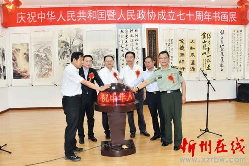 圖為省市領(lǐng)導(dǎo)共同啟動(dòng)書畫展 樊文珍 攝