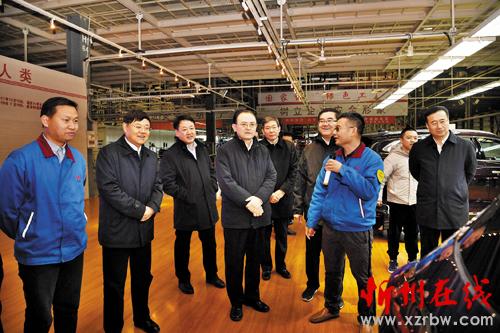 圖為省人大常委會副主任、市委書記李俊明在鄂爾多斯市調(diào)研奇瑞汽車整車生產(chǎn)項目建設(shè)運營情況。本報記者劉紀(jì)森攝