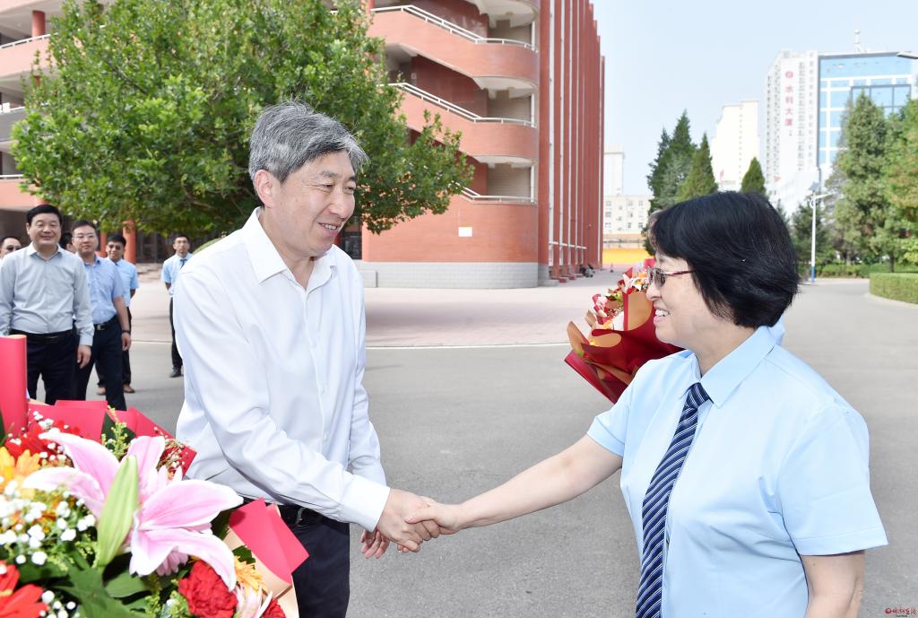 在第39個(gè)教師節(jié)到來之際,9月7日,市委書記朱曉東來到忻州市第一中學(xué)、忻州市第五中學(xué)和忻州市七一路小學(xué),看望慰問一線教師,代表市委、市政府向全市廣大教師和教育工作者致以節(jié)日祝賀和誠摯問候。他強(qiáng)調(diào),教育興則國家興,教育強(qiáng)則國家強(qiáng)。全市上下要深刻領(lǐng)會(huì)習(xí)近平總書記在中共中央政治局第五次集體學(xué)習(xí)時(shí)關(guān)于建設(shè)教育強(qiáng)國的重要講話精神,全面貫徹黨的教育方針,落實(shí)立德樹人根本任務(wù),以為黨育人、為國育才為根本目標(biāo),大力培養(yǎng)擔(dān)當(dāng)民族復(fù)興大任的時(shí)代新人。市委常委、秘書長溫建軍及市直相關(guān)部門負(fù)責(zé)同志參加。