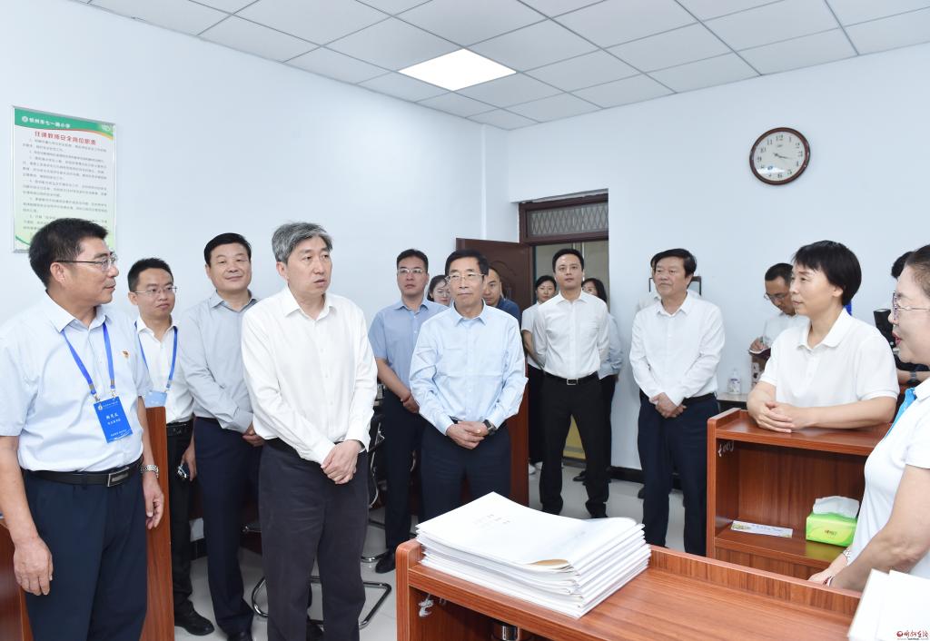 在忻州市七一路小學(xué),朱曉東了解辦學(xué)歷史、師資力量和教學(xué)規(guī)模等情況,走進(jìn)教研組看望正在備課的一線教師,來到操場觀看學(xué)生手工制作、足球等興趣活動(dòng)及作品展示,觀看學(xué)校宣傳片,并就學(xué)校改擴(kuò)建工程進(jìn)行現(xiàn)場調(diào)研。他指出,小學(xué)教育是抓好基礎(chǔ)教育的關(guān)鍵。廣大教育工作者要帶著感情、責(zé)任、情懷投身教育事業(yè),當(dāng)好學(xué)生全面發(fā)展、健康成長的引路人。希望學(xué)校堅(jiān)持特色發(fā)展,持續(xù)鞏固提升辦學(xué)水平,促進(jìn)學(xué)生全面發(fā)展。