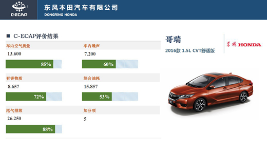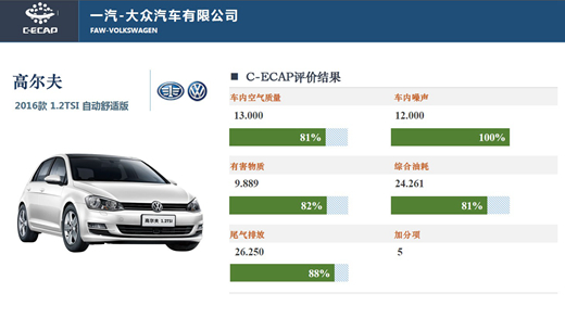 在本批次C-ECAP評價中,一汽-大眾高爾夫車型獲得截止至目前C-ECAP評價車型中的最高獎牌白金牌;廣汽傳祺是在C-ECAP中首次出現(xiàn)的中國品牌,與觀致車型一并獲得金牌;東風(fēng)本田哥瑞因在車內(nèi)噪音方面的相對得分較低,獲得銀牌。