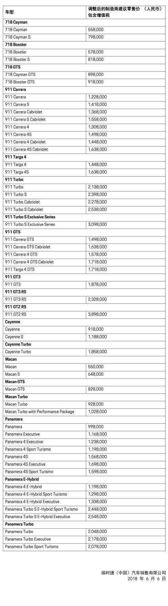 以下為保時捷官方調價聲明: