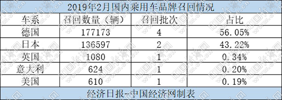 分車系來看,3月,德系和日系累計召回汽車數(shù)量占召回總量多達(dá)99.27%。其中,德系共4個品牌累計召回汽車177173輛,占召回總量的56.05%,數(shù)量最多;日系共2個品牌累計召回汽車136597輛,占比43.22%;此外,英國、意大利、美國各有一品牌發(fā)布了召回公告,但三車系總共召回數(shù)量不足總量的1%。值得注意的是,繼2月之后,3月仍無自主品牌發(fā)布召回信息。