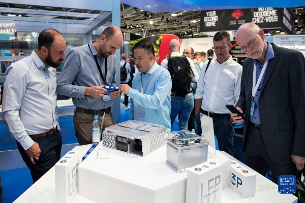 9月5日,人們?cè)诘聡?guó)慕尼黑國(guó)際車(chē)展的寧德時(shí)代展區(qū)咨詢(xún)洽談。