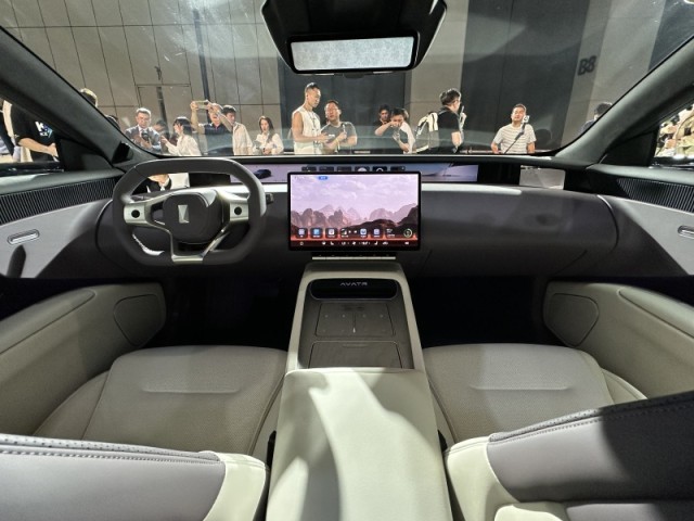 新車內部配備“云境環(huán)擁式感應座艙”,采用尺寸達到35.4英寸的4K全景寬屏,兩側配有流媒體后視鏡顯示區(qū)域,中央部位可顯示多項駕駛信息。另外,該車還配備一塊15.6英寸中控屏幕與造型新穎的多功能方向盤。細節(jié)部分,阿維塔12在座艙內部使用大量Nappa真皮材質進行包覆,并配備超柔觸感類麂皮精致頂棚,整體極具質感。