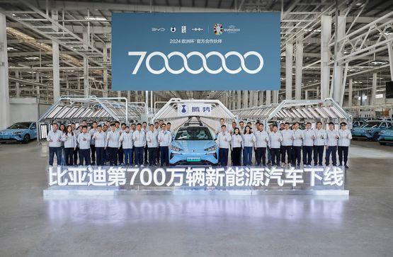 2024年3月25日,比亞迪再次刷新紀(jì)錄,成為全球首家達(dá)成第700萬輛新能源汽車下線的汽車品牌,全新騰勢N7作為下線車型在濟(jì)南工廠亮相。