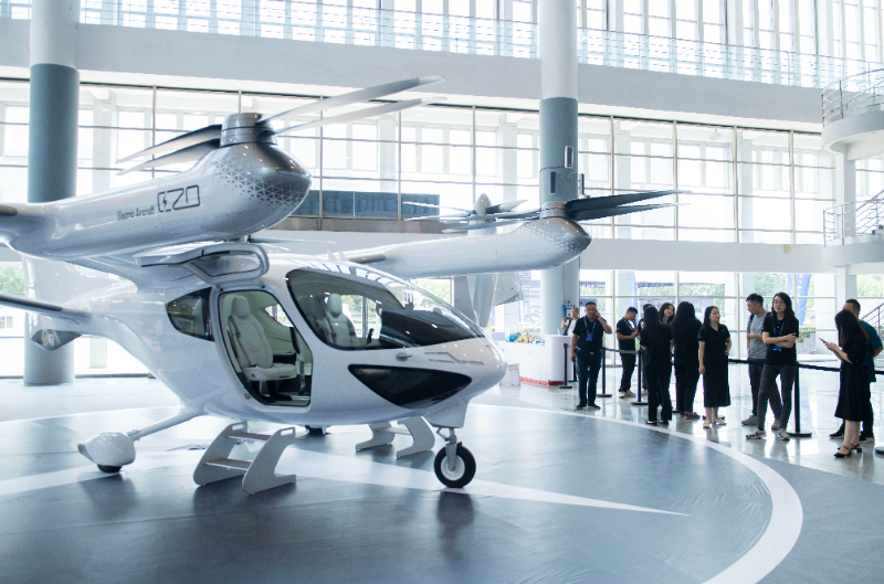 9月6日,觀眾在2024低空經(jīng)濟(jì)發(fā)展大會(huì)創(chuàng)新成果展區(qū)了解一款電動(dòng)垂直起降飛行器。新華社記者 傅天 攝