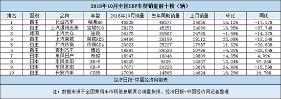而今年前期表現(xiàn)突出的合資品牌SUV在年末則沒有了銷售壓力,因此也表現(xiàn)出了更加保守的走勢以為來年蓄力。10月,途觀失守亞軍位置跌落至第三;而日系則仍有三車入榜,其中從“機油門”困擾中逐步走出的東風本田有兩車入榜;而昂科威跌出榜單后,美系則已無車入榜。