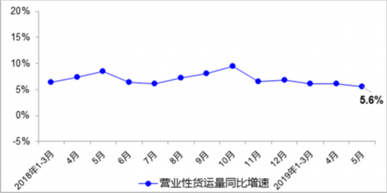 5月,完成營業(yè)性貨運量46.5億噸,同比增長5.6%,其中公路貨運量增長5.6%、水路貨運量增長5.0%。郵政行業(yè)完成業(yè)務總量1309億元,同比增長30%。