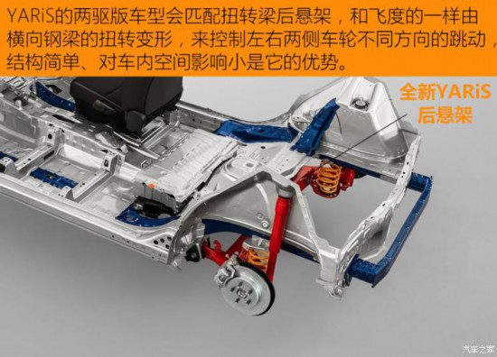 對(duì)于這些尺寸小巧的車型來(lái)說(shuō),提高車內(nèi)的空間利用率非常的重要,日本工程師往往非常擅長(zhǎng)這一點(diǎn)。在全新YARiS(兩驅(qū)版)和飛度都選擇了前麥弗遜+后扭轉(zhuǎn)梁的懸架結(jié)構(gòu),這是綜合性能和空間因素后最合理的設(shè)計(jì)方案。