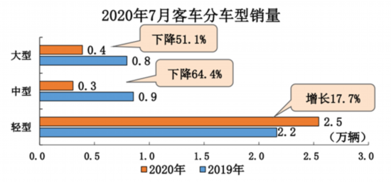從細(xì)分車型來(lái)看,7月,大型客車銷0.4萬(wàn)輛,環(huán)比下降37.7%,同比下降51.1%;1-7月,大型客車銷2.7萬(wàn)輛,同比下降33.8%。中型客車銷0.3萬(wàn)輛,環(huán)比下降27.0%,同比下降64.4%;1-7月,中型客車銷2.0萬(wàn)輛,同比下降44.3%。輕型客車銷2.5萬(wàn)輛,環(huán)比下降21.9%,同比增長(zhǎng)17.7%;1-7月,輕型客車銷17.0萬(wàn)輛,同比下降1.7%。