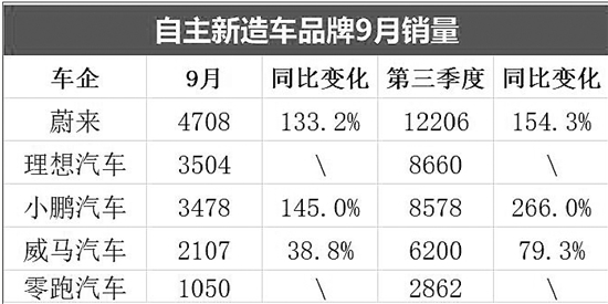 無(wú)論口水怎么戰(zhàn),銷(xiāo)量是檢驗(yàn)口舌的最好工具。今年9月,造車(chē)新勢(shì)力們的表現(xiàn)令人刮目相看。9月造車(chē)新勢(shì)力總計(jì)銷(xiāo)量超過(guò)14000輛,相比8月份漲了一倍還多,9月銷(xiāo)量可以用“暴增”來(lái)形容也一點(diǎn)不為過(guò)。蔚來(lái)暫處桿位,9月銷(xiāo)量為4708輛,第三季度共實(shí)現(xiàn)銷(xiāo)量12206輛,成為造車(chē)新勢(shì)力今年以來(lái)首個(gè)銷(xiāo)量破萬(wàn)車(chē)企。