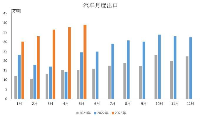 2023年5月,汽車企業(yè)出口38.9萬(wàn)輛,環(huán)比增長(zhǎng)3.4%,同比增長(zhǎng)58.7%。