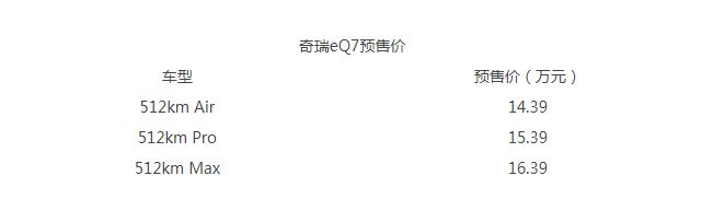 網(wǎng)通社從官方獲悉,基于中國首個(gè)鋁基輕量化平臺打造的首款車型奇瑞eQ7正式開啟預(yù)售,共推出3款車型,預(yù)售價(jià)14.39萬元-16.39萬元。