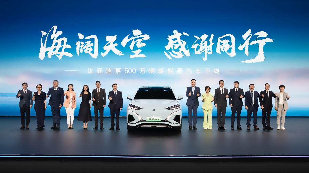 央廣網(wǎng)北京8月10日消息 8月9日,比亞迪第500萬輛新能源汽車正式下線,成為全球首家達(dá)成這一里程碑的車企。這不僅是比亞迪的全新里程碑,更是中國品牌向好向上發(fā)展的見證。發(fā)布會現(xiàn)場,比亞迪股份有限公司董事長兼總裁王傳福對500萬新能源用戶、政府部門、媒體朋友、上下游合作伙伴、同行友商及60多萬員工表達(dá)衷心的感謝。