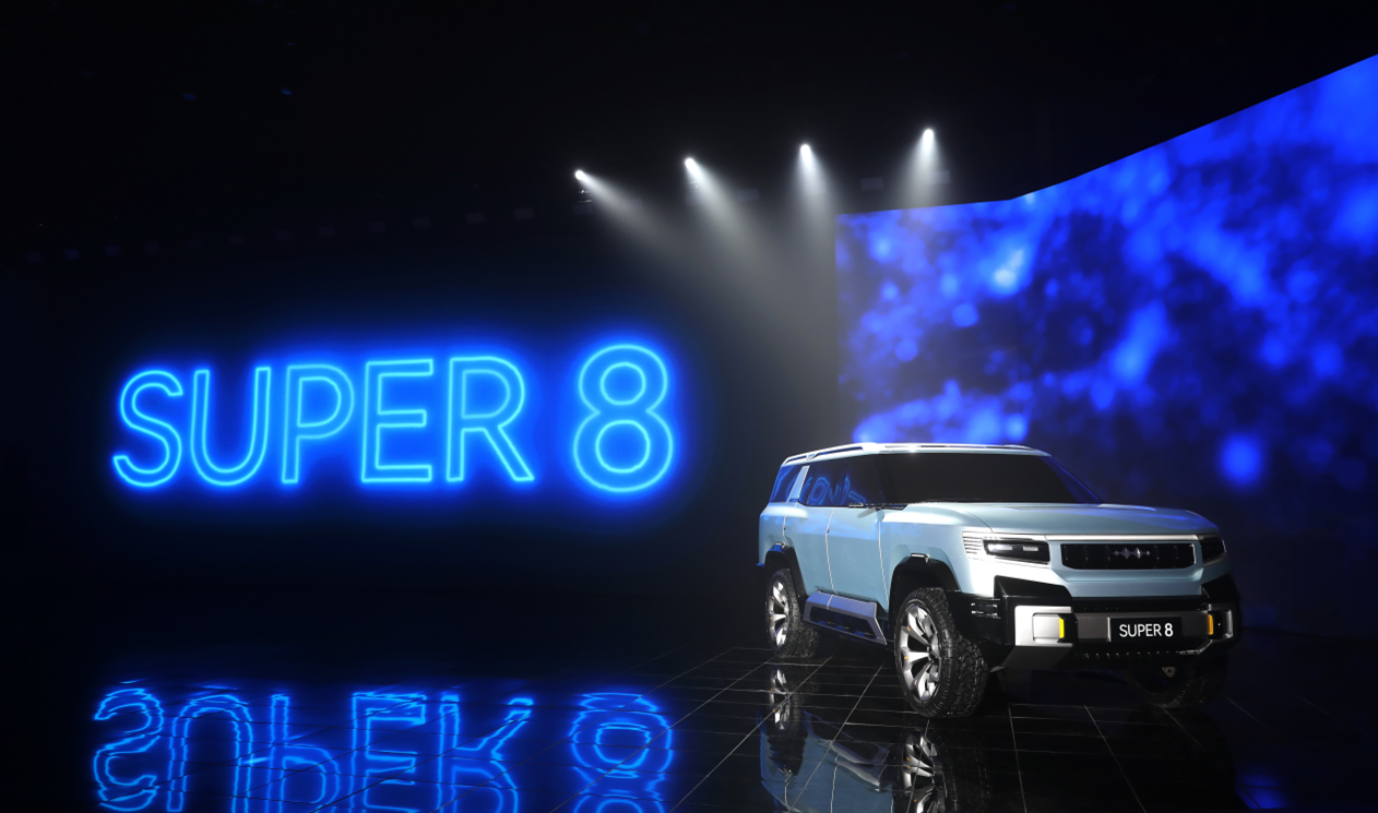 豹8車型的概念車SUPER 8,則展示了方程豹對硬派SUV的未來探索。SUPER 8在設計上不再拘泥于傳統的方盒子設計,而是從科幻的未來戰(zhàn)場獲取靈感,將賽博工業(yè)美學與肌肉感相融合,營造出強壯、寬大的體量和高級、純粹的車身形面;咬合式鎖扣設計環(huán)繞整車,體現了底盤與車身的上下分體式連接,又展現出極強的結合性、穩(wěn)固性與保護感,讓用戶自信馳騁、自由穿越、自在征服。