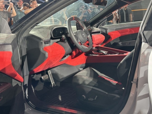 內(nèi)飾方面,極氪001 FR版內(nèi)飾整體采用黑紅雙色搭配,并且在觸手可及的地方均采用翻毛材質(zhì)包裹,在方向盤多功能按鍵下方的兩個(gè)紅色按鈕,一鍵開啟運(yùn)動(dòng)模式。座椅方面,極氪001 FR版座椅采用一體式賽車座椅,在前排座椅后方采用碳纖維包裹,整體看上去更具戰(zhàn)斗氣息。