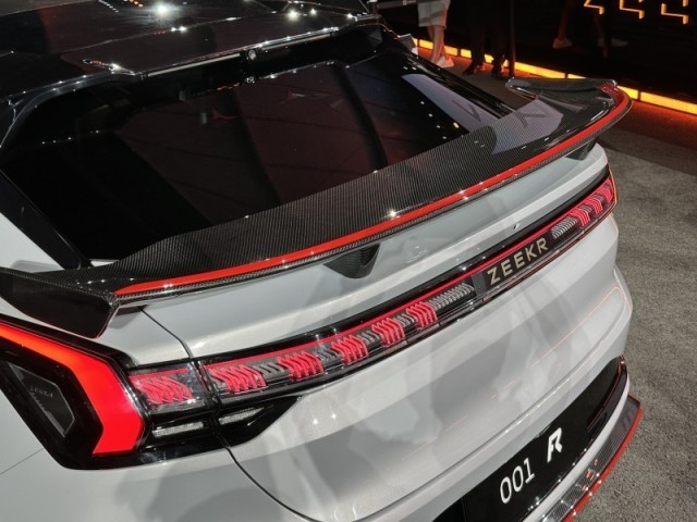 車尾部分,極氪001 FR版在后備箱的上方加入了大尺寸的碳纖維尾翼,并且融入了紅色飾條做點(diǎn)綴,搭配后保險(xiǎn)杠處夸張的碳纖維后擴(kuò)散器,不管在空氣動(dòng)力學(xué)還是在重量上都有積極地作用,在整體的視覺感受上同樣營(yíng)造出十足的運(yùn)動(dòng)感。