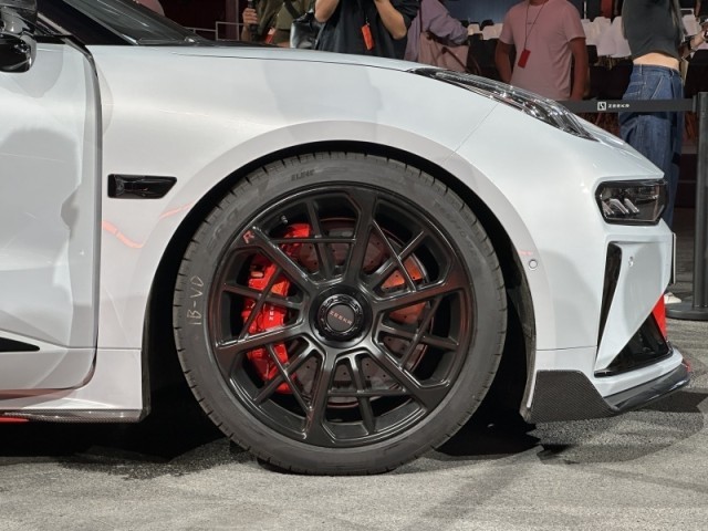 此外,極氪001 FR版將配備高性能鍛造輪圈,并將裝配22英寸佳通賽事GTR2輪胎,并還配備了AP Racing前10活塞、后4活塞制動卡鉗和Brembo碳陶制動盤。
