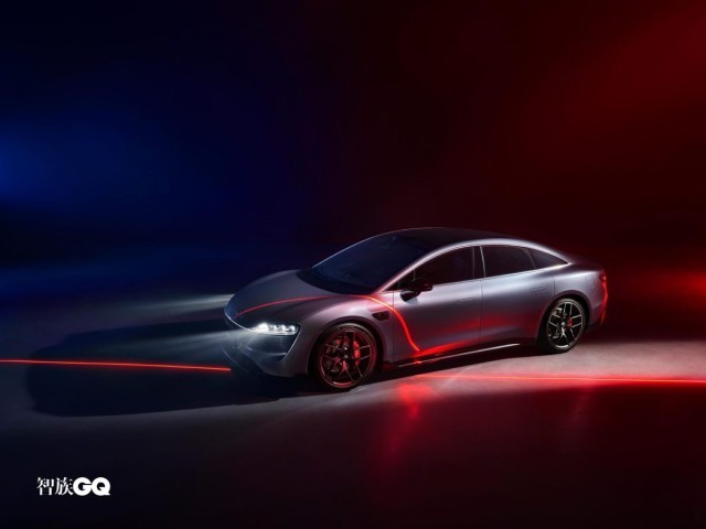 新車側(cè)面造型較為飽滿、流暢,略微向下傾斜的車頂線條搭配隱藏式車門把手和車窗邊框處的鍍鉻飾條進行點綴時尚感較強。此外,智界S7還配備五輻式熏黑輪圈和紅色涂裝的高性能剎車卡鉗。車尾部分,修長的貫穿式LED尾燈組點亮后辨識度較強,鴨尾式擾流板與寬大的亮黑色后包圍組件則增強了車尾的視覺層次感。