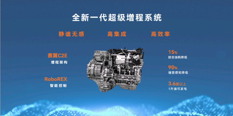 在2024年廣州車展上,全新一代賽力斯超級增程系統(tǒng)正式發(fā)布,該系統(tǒng)基于“賽翼(C2E)增程架構(gòu)”與“RoboREX智能控制技術(shù)”打造,實(shí)現(xiàn)了靜謐無感、高集成、高效率三大行業(yè)領(lǐng)先優(yōu)勢。