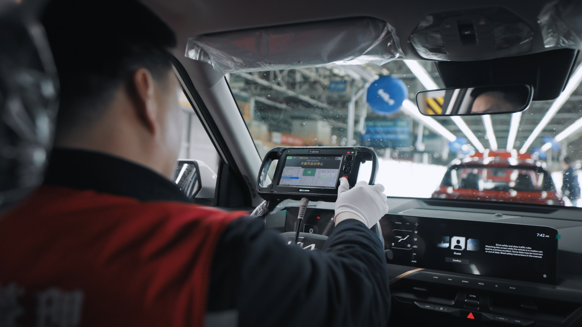 總裝車間作為汽車生產(chǎn)最后一道關(guān)卡,采用柔性生產(chǎn)線與數(shù)字化生產(chǎn)系統(tǒng),配備ONEKIT物流系統(tǒng)、緊固履歷系統(tǒng)及工業(yè)視覺技術(shù)。實時監(jiān)測總裝數(shù)據(jù)與指標,確保每輛下線汽車符合全球統(tǒng)一生產(chǎn)標準,保障總裝品質(zhì)與效率。