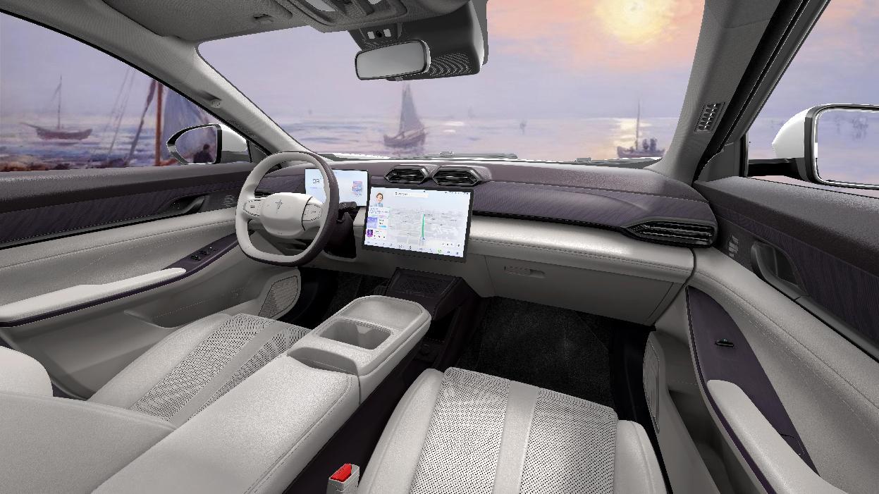 示界06以輕法式美學(xué)為設(shè)計(jì)基調(diào)。外觀采用鋒銳自由流線造型,琴弓弦月尾燈靈感源自小提琴弓造型,通過(guò)曲面轉(zhuǎn)折與立體光效,勾勒出如交響樂(lè)章般的光影韻律。車(chē)內(nèi)則以日出印象為靈感,營(yíng)造溫暖、松弛、充滿生活儀式感的視覺(jué)體驗(yàn)。標(biāo)配高通驍龍8155車(chē)規(guī)級(jí)芯片、電動(dòng)可開(kāi)啟全景天窗、主駕座椅加熱通風(fēng)與記憶功能,擁有同級(jí)領(lǐng)先的NVH靜音水平,85%超軟PVC軟觸包覆,采用高溫粒子雙重烘烤工藝,TVOC釋放量?jī)?yōu)于國(guó)標(biāo),全方位護(hù)航駕乘健康,滿足每一位駕乘者的舒適體驗(yàn)。