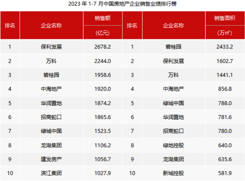 從企業(yè)表現(xiàn)來看,克而瑞報告顯示,2023年7月有逾8成百強(qiáng)房企單月業(yè)績環(huán)比降低,同比降低的企業(yè)在也占到近7成。具體來看,7月有超半數(shù)百強(qiáng)房企的單月業(yè)績同比降幅大于30%,其中36家企業(yè)同比降幅超過50%。但同時,也有一些企業(yè)的業(yè)績表現(xiàn)相對突出。如越秀地產(chǎn)、保利置業(yè)、華僑城、聯(lián)發(fā)集團(tuán)、大華集團(tuán)等房企7月單月業(yè)績?nèi)詫?shí)現(xiàn)同比增長。