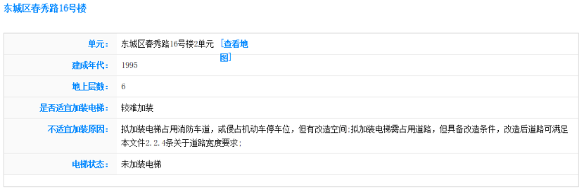 北京市住房城鄉(xiāng)建設委組織各區(qū)對本轄區(qū)內市屬老舊小區(qū)約2萬多棟既有多層住宅樓、10萬余個單元門,從建筑結構安全、空間條件和居民意愿等方面進行了初步摸排評估,在此基礎上,會同市有關部門開發(fā)了加梯地圖專欄,為居民實現(xiàn)既有住宅“加梯夢”提供了一份詳細的攻略圖。