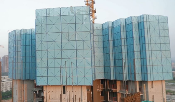 而在外墻施工上,則采用了先進(jìn)的自升式外爬架技術(shù),爬架采用全封閉維護(hù)結(jié)構(gòu),讓工人施工更加安全,也不用再另外搭建腳手架,減少建筑垃圾產(chǎn)生。