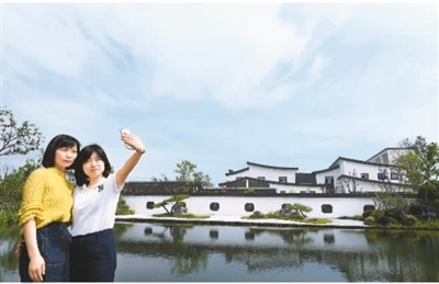 杭州臨平凈水廠“水美公園”采用“地下污水處理,地上綠地公園”模式建造,約7米深的地下是一片全封閉凈水廠,日處理20萬(wàn)噸污水,在地面增加了約200畝的綠化面積。圖為市民在“水美公園”拍照留念。 龍 巍攝(人民圖片)
