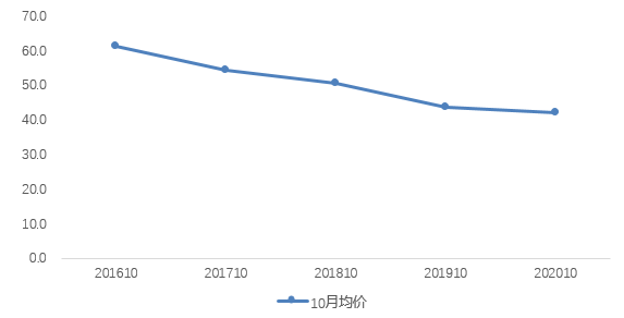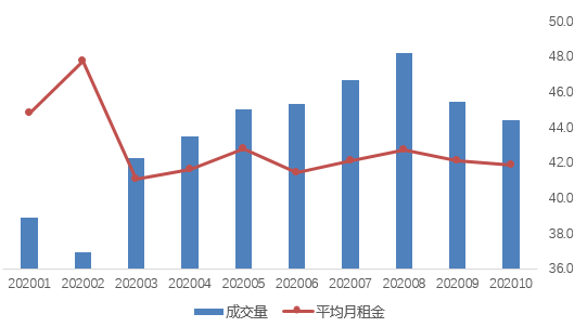 貝殼研究院數(shù)據(jù)顯示,10月貝殼重點(diǎn)城市租賃市場(chǎng)成交量環(huán)比持續(xù)下降,租金水平同比四連降達(dá)到近五年最低值。從成交量來(lái)看,10月租賃成交量環(huán)比下降10.5%,延續(xù)9月的下降態(tài)勢(shì)。從租金水平來(lái)看,2016-2020年的10月租金四連降,達(dá)到近五年最低。2020年10月重點(diǎn)城市平均月租金為41.8元/平米,環(huán)比下降0.6%,同比下降4.0%。