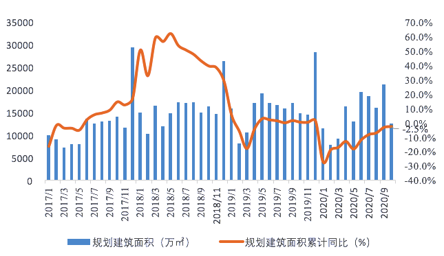全國(guó)351城季度成交規(guī)劃建筑面積及累計(jì)同比 數(shù)據(jù)來(lái)源:貝殼研究院整理