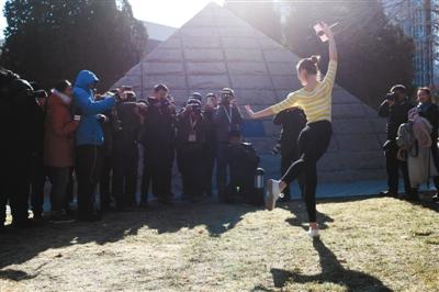 昨日,北京電影學(xué)院,一名表演專業(yè)考生在展示才藝。新京報(bào)記者 浦峰 攝