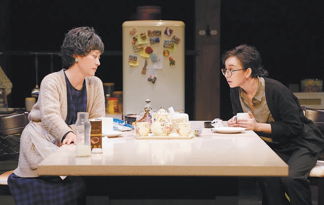 “《晚安,媽媽》沒有大的戲劇沖突,所有的矛盾都來自真實的生活,通過合情合理的人物關(guān)系和環(huán)環(huán)相扣的對話,去撥開日常生活之下翻滾的心?!碧茻钚稳?,這是一部沒有借助所謂的“手段”的作品,100分鐘的演出真誠動人,靠的是扎實的舞臺實景和兩位演員牽動肺腑的表演——冰箱里塞滿食物,杯子盛著冒白氣的熱巧克力,水龍頭能擰出自來水,沒有刻意的音樂和效果,整座舞臺如同真實生活的切面。演員需要在“做家務(wù)”的同時進(jìn)行快節(jié)奏、高密度的對話,“手上不能停,但也不能攪戲,比如母女倆換沙發(fā)套的那一段,我們就練了很久很久?!碧茻钫f。