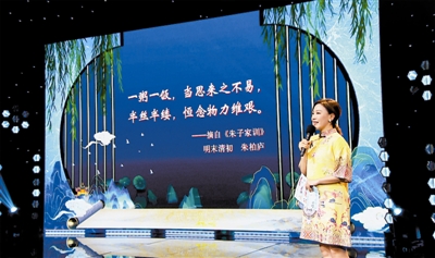 整場(chǎng)節(jié)目緊扣“以詩(shī)會(huì)友”的主題,穿插“詩(shī)詞對(duì)對(duì)碰”“詩(shī)詞互動(dòng)劇”“詩(shī)詞猜猜猜”“你比我猜”等多個(gè)游戲環(huán)節(jié),并邀請(qǐng)諸多藝術(shù)名家到場(chǎng)獻(xiàn)藝,融入情景講述、詩(shī)詞歌曲、原創(chuàng)朗誦、京劇選段、燈光秀等多種豐富多彩的文藝節(jié)目。其中,播音表演藝術(shù)家丁涵攜播音員芬菲帶來(lái)原創(chuàng)朗誦《強(qiáng)核報(bào)國(guó)王承書》、主持人網(wǎng)紅孫媛帶來(lái)情景講述《詩(shī)詞里的文明》、天津歌舞劇院女高音歌唱家張晏蓉演繹原創(chuàng)歌曲《清平樂(lè)·秋思》、天津市青年京劇團(tuán)京劇名家張悅帶來(lái)京劇選段《紅娘》、青年歌手李安娜帶來(lái)歌曲《相見歡·獨(dú)上西樓》、梁?jiǎn)⒊示訜艄庑阏故尽⒗顚殐簬?lái)朗誦《少年中國(guó)說(shuō)》等緊扣主題的表演,為詩(shī)會(huì)增添色彩。